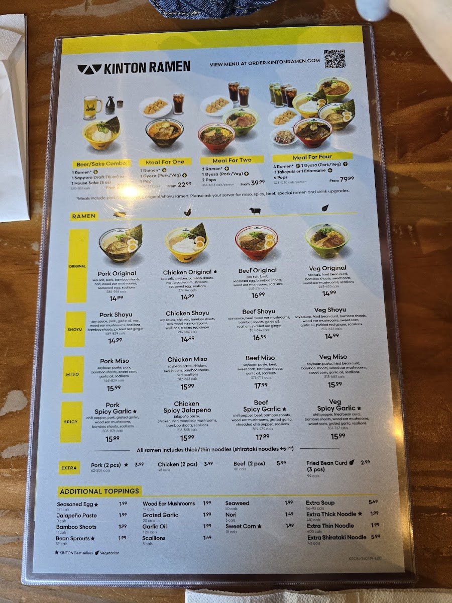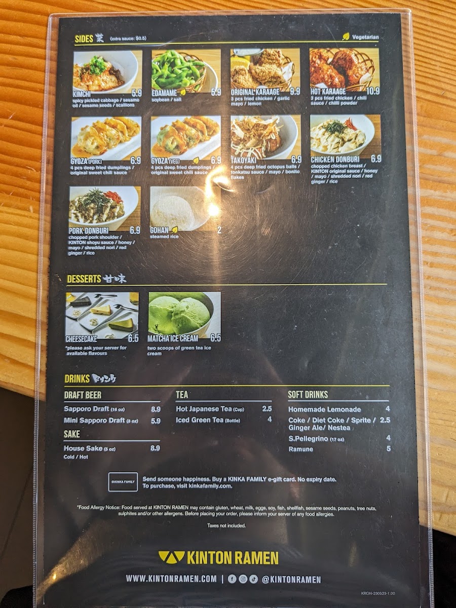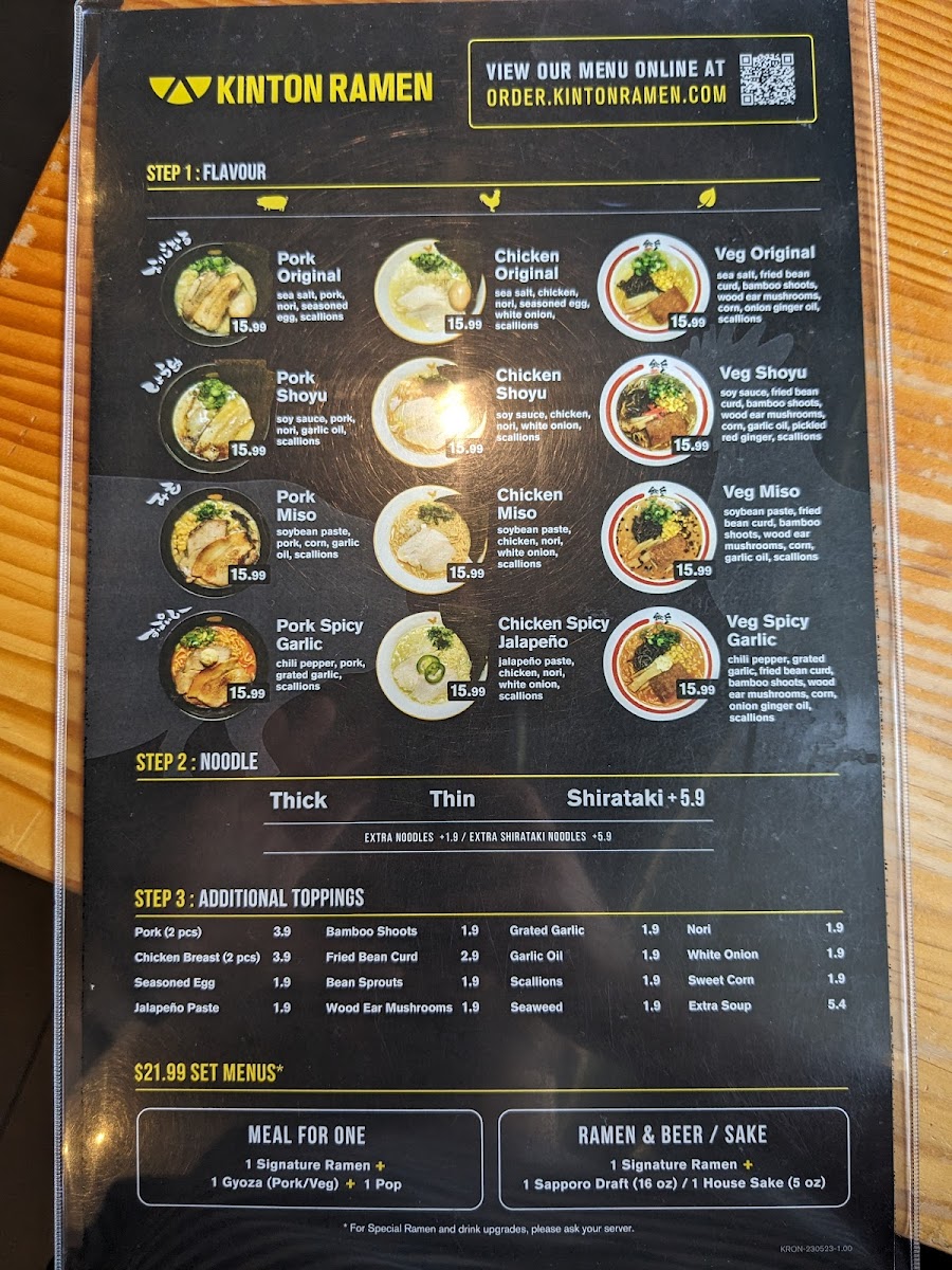 KINTON RAMEN WATERLOO Menu (Update 2025)
